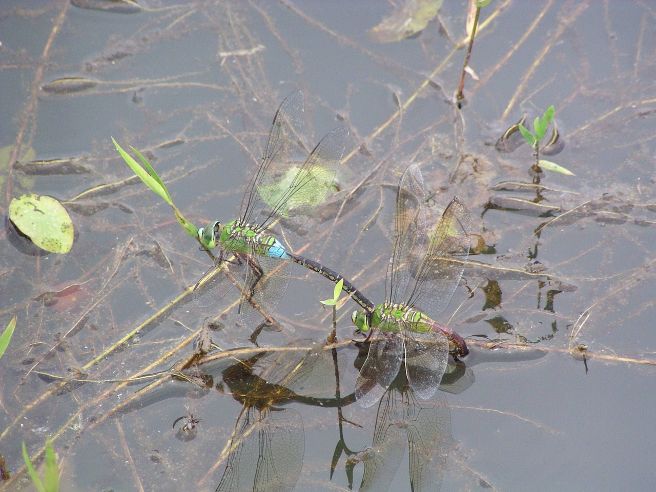 2014年7月16日 那須町 ギンヤンマは連結産卵をしますが、単独でもします。 |