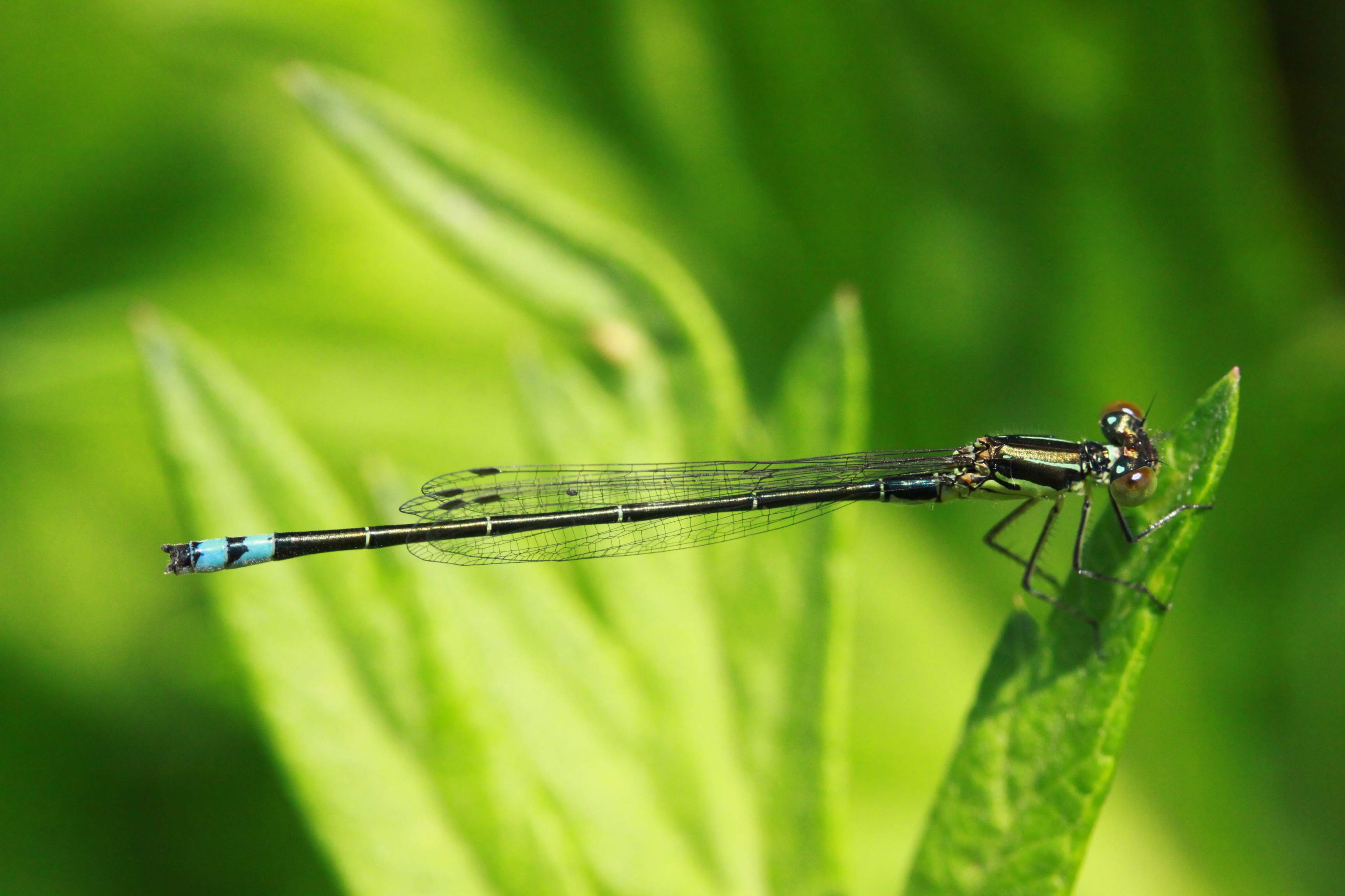 クロイトトンボ 沼や池に普通にいるトンボですが、とてもきれいですね。今までこんなにきれいだとは気がつきませんでした。 成長すると粉をふきます。産卵で水に潜ると水がはじけて穴のようになるのはとても不思議です。他のトンボもこのような現象が起きるのでしょうか?