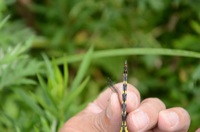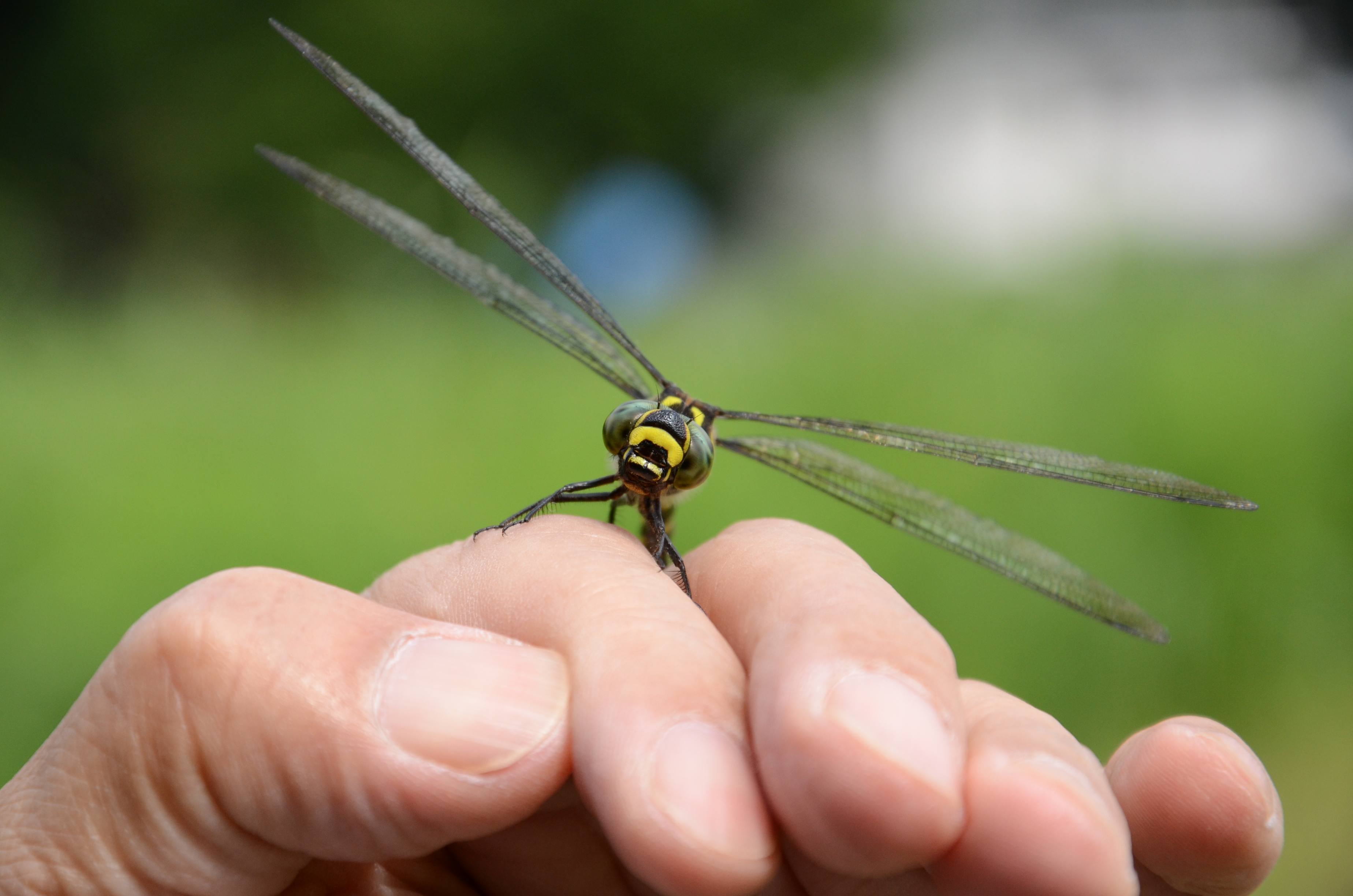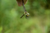 2014年9月10日 那須町 私のかぶっている帽子にミルンヤンマが留まり、産卵を始めました。失礼ながら撮影に協力して頂きました。マクロレンズを持っていたらよかったのですが。 |