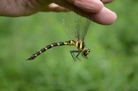 | 栃木のトンボ(1969)では、「産地も個体数も局限されており、本県では稀種に属する。」と記されています。産卵は単独で、細い流れの側の朽木や倒木にしています。 |