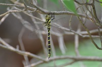 2013年7月26日 那須町 ミルンヤンマの羽化 今年2回目 細い流れの脇を歩いていると急 に飛び立って近くの枝に留まりました。羽化したばかりの♀のミル ンヤンマでした。 |