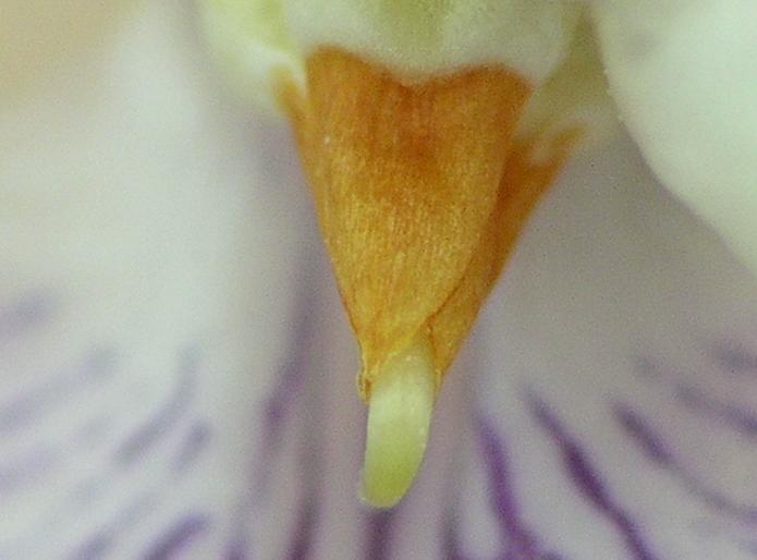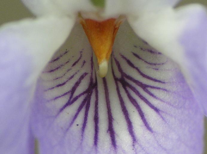 ケマルバスミレ白 唇弁に紫色の筋卵円形