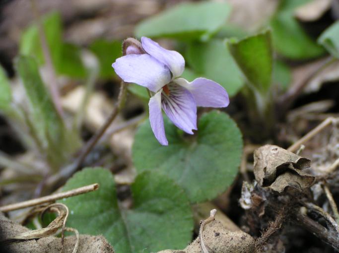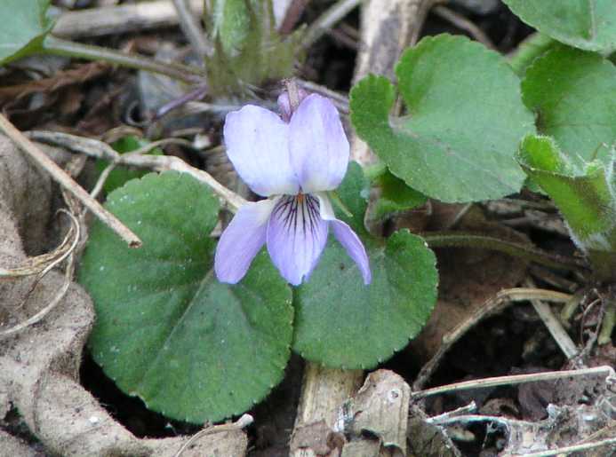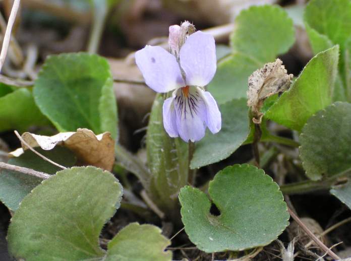アオイスミレ淡紫か白色円心形で葉先は円い