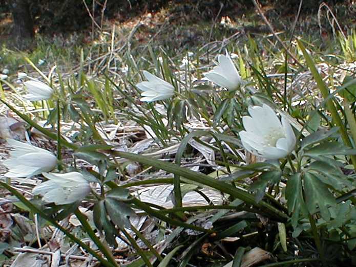 3.特徴 茎葉は3出しそれぞれ幅の広い3枚の小葉が輪生します。花びら状で白色の萼片は12枚ほど。花期3月下旬〜5月