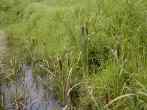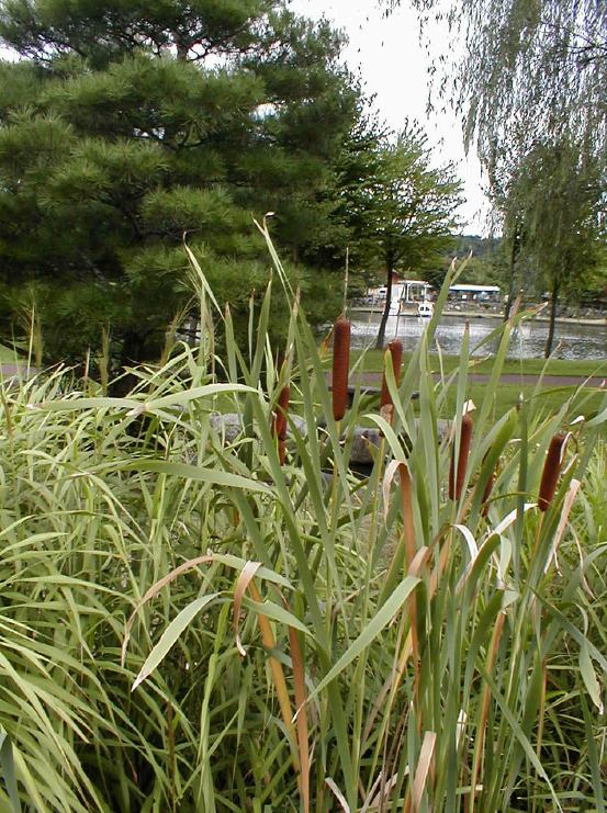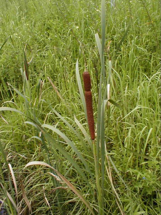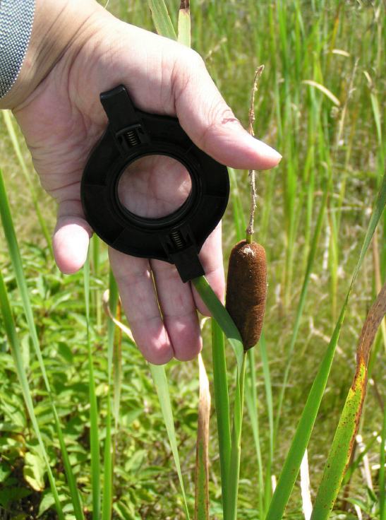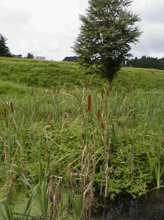 葉は細く1㎝程度で、背丈も低い。花穂は画像で分かるように雌花穂は5㎝ほどで河畔公園で見るガマとはかなり違っている。花粉を調べて見よう。