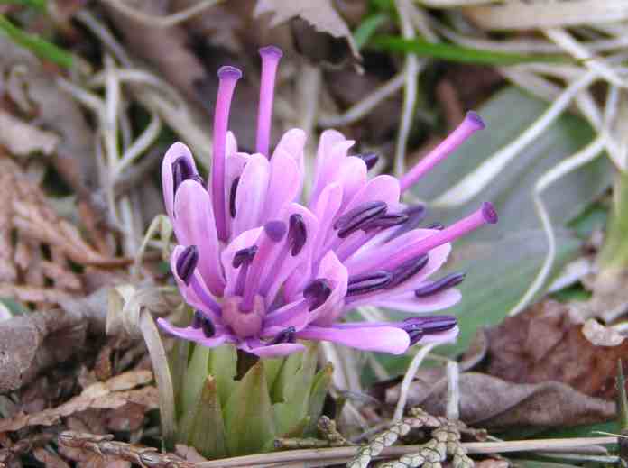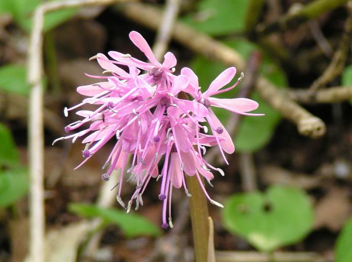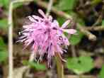 ショウジョウバカマのデータ 1.分布 北海道〜九州 2.生育地 山地の樹林下でやや湿った場所 3.特徴 花の色は淡赤紫から濃赤紫、白色など変化が多い。古い葉の先端が地面に触れ新芽ができる。
