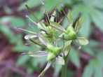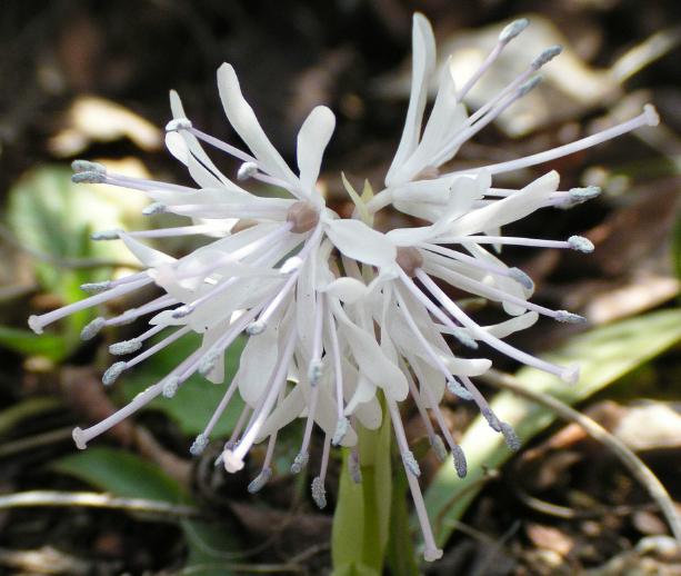 子房は果実となり裂開して糸状の種子が放出される(2003年6月3日の画像)。シロバナショウジョウバカマ(学名 Helonias breviscapa (Maxim.) N.TanakaまたはHeloniopsis orientalis (Thunb.) Tanaka var. flavida (Nakai) Ohwi)は葉の縁に鋸歯があるなど違いがあるようです。